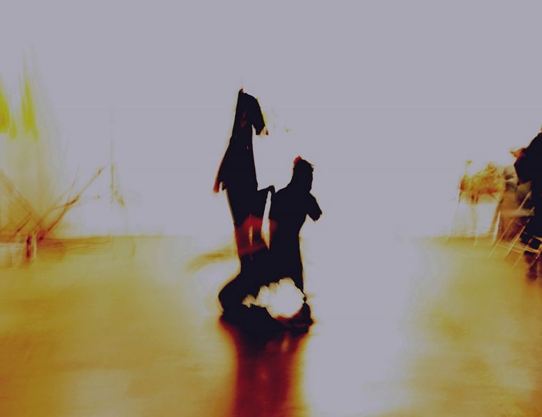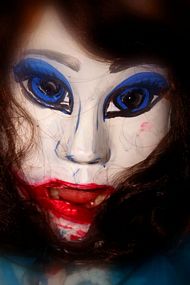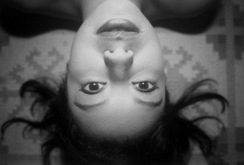 children playing in the street scene, an upside-down portrait of a woman’s face,