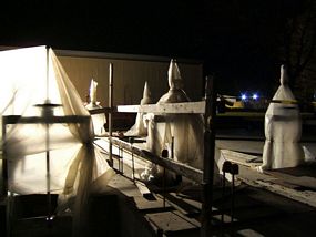 yet another of a stream of blurred color shot of a passing truck; a reverberating